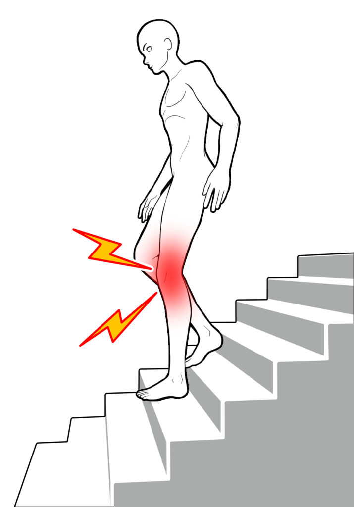 • 荷重時の疼痛:歩行・階段昇降・立ち上がりで増強する膝の痛み