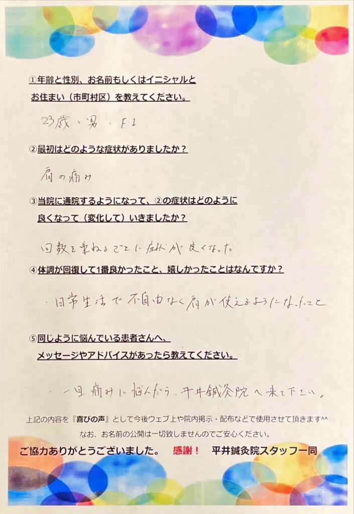 肩の痛み F・Iさん(23)